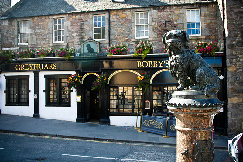 Bobby, un perro de raza Sky Terrier muy conocido por los ciudadanos escoceses debido a la fidelidad que demostró ante su amo, el policía John Gray quien sufría de tuberculosis y murió en 1858. Después de su entierro en el cementerio de Greyfriars, su gran amigo Bobby no se movió de la tumba nunca, durante los 14 años siguientes, esta gran mascota permaneció siendo fiel a su amo mientras que los habitantes de la ciudad lo alimentaban y se encariñaban cada vez más con él.