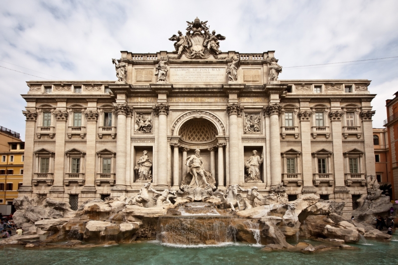 Fue completada por Nicolo Salvi en 1735, durante el papado de Clemente XII, e inmortalizada en la película «La docle vita» de Federico Fellini, rodada en 1959.