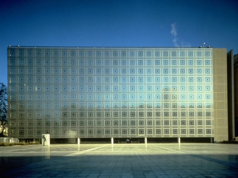 El instituto del Mundo Árabe se compone de once plantas a nivel del suelo y tres subterráneas que hacen gala de detalles como por ejemplo terrazas, voladizos, escaleras unidas y cruzadas, unos cuantos techos bajos, paredes de cristales, dos puentes y dos fachadas, una al norte y otra al sur.